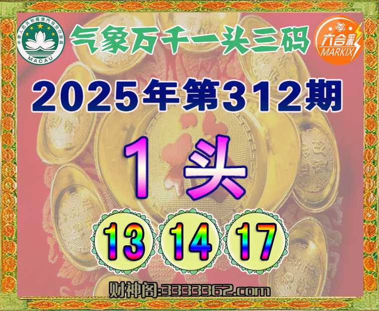 312期:『气象万千』 🥩一头三码🥩【1头主:13.14.17】开:龙14