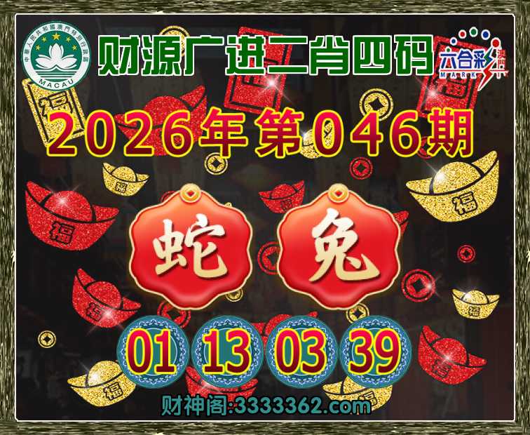 046期:《财源广进》 🍅二肖四码🍅【蛇】【01.13.03.39】开:兔03