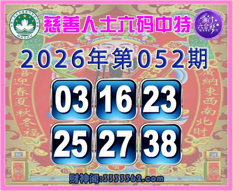052期:【慈善人士】 🪢六码中特🪢【03.16.23.25.27.38】开:38