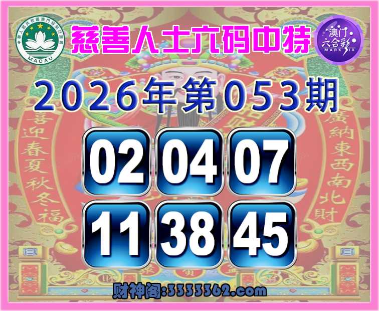 053期:【慈善人士】 🪢六码中特🪢【02.04.07.11.38.45】开:00准