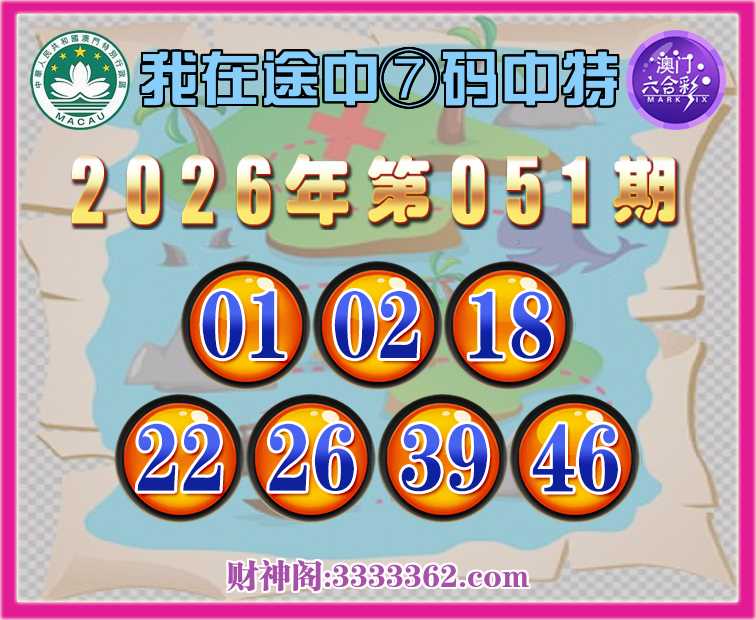 051期:【我在途中】 🍖⑦码中特🍖【01.02.18.22.26.39.46】开:01