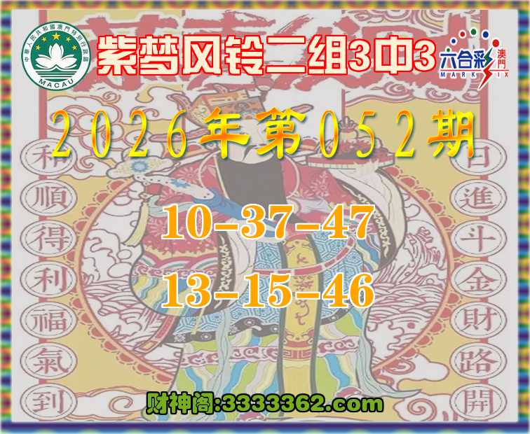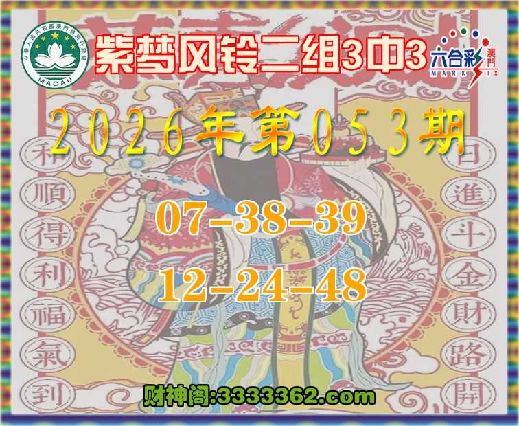 053期:紫梦风铃【二组3中3】〓 千万富翁