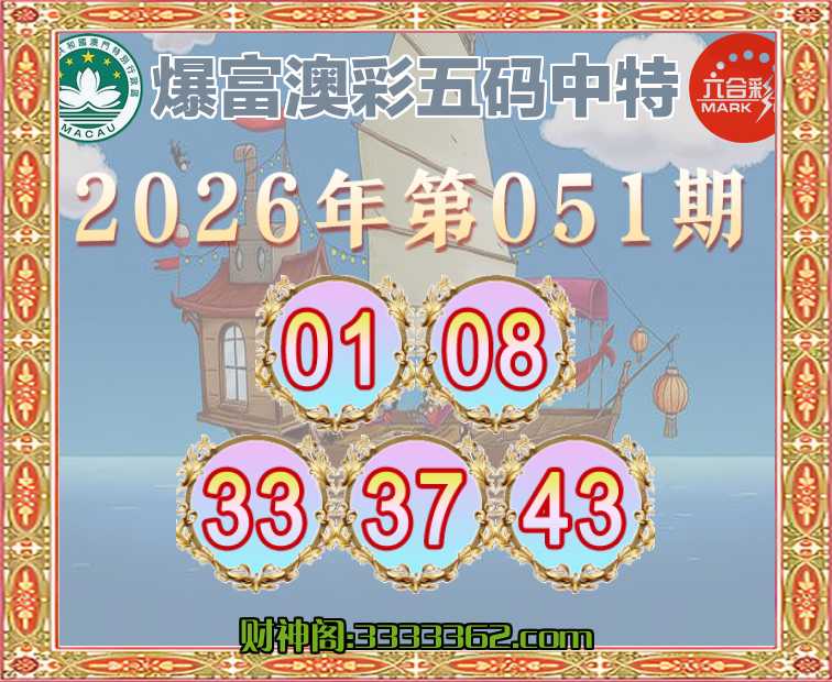 051期:《爆富澳彩》 🚵‍♀️五码中特🚵‍♀️【01.08.33.37.43】开:01