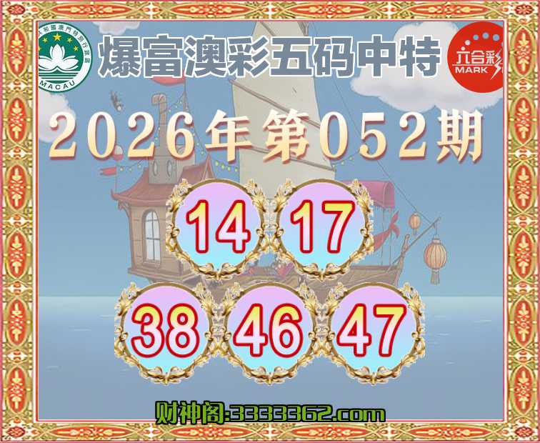052期:《爆富澳彩》 🚵‍♀️五码中特🚵‍♀️【14.17.38.46.47】开:38