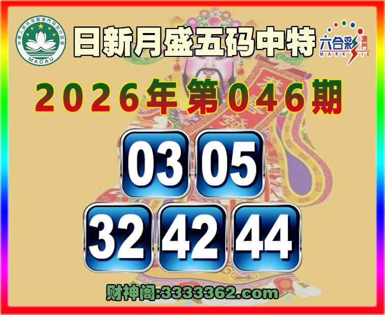 046期:『日新月盛』五码中特⌚【03.05.32.42.44】开:03