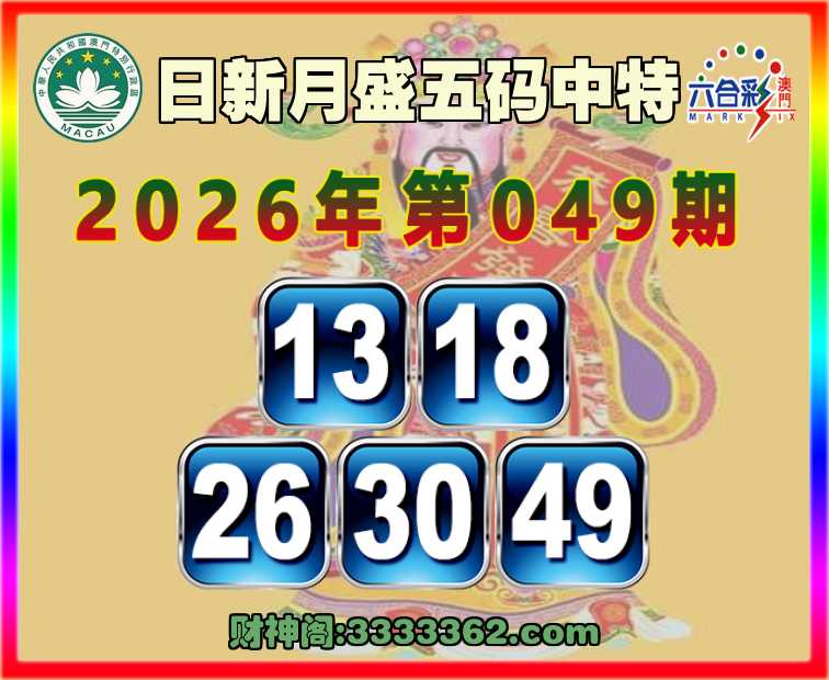 049期:『日新月盛』五码中特⌚【13.18.26.30.49】开:13