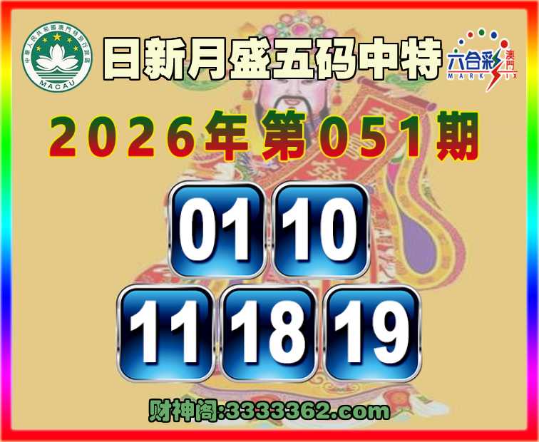 051期:『日新月盛』五码中特⌚【01.10.11.18.19】开:01