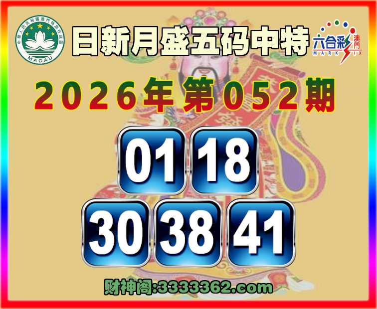052期:『日新月盛』五码中特⌚【01.18.30.38.41】开:38