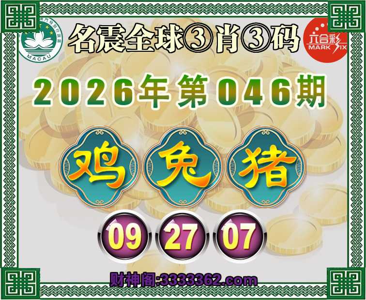 046期:【名震全球】 🍕③肖③码🍕【鸡猪】【09.27.07】开:兔03