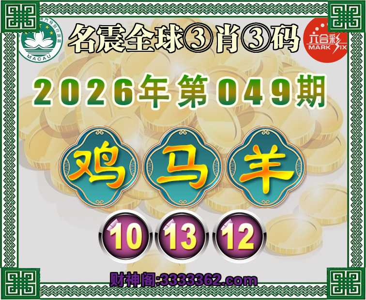 049期:【名震全球】 🍕③肖③码🍕【鸡羊】【10.13.12】开:马13