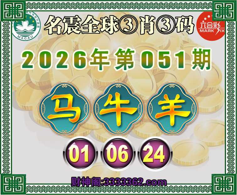 051期:【名震全球】 🍕③肖③码🍕【牛羊】【01.06.24】开:马01