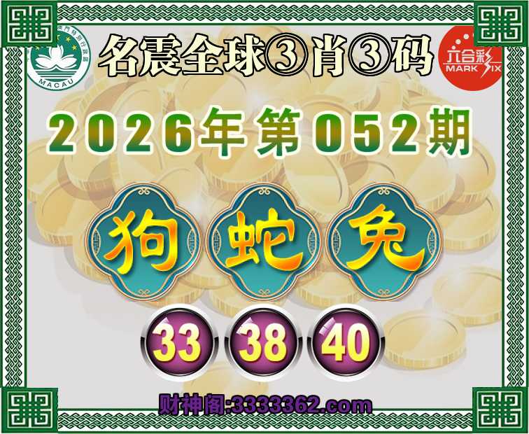 052期:【名震全球】 🍕③肖③码🍕【狗兔】【33.38.40】开:蛇38