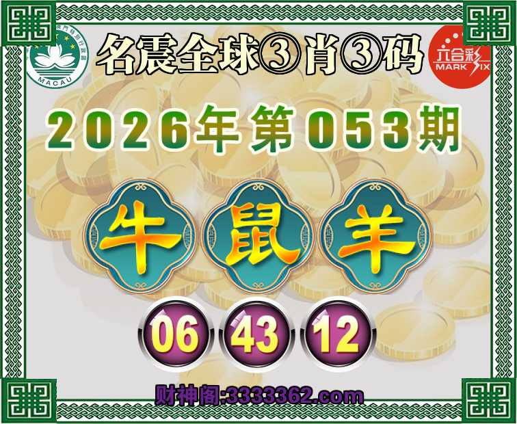 053期:【名震全球】 🍕③肖③码🍕【牛鼠羊】【06.43.12】开:00准