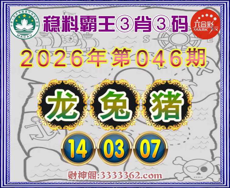 046期: 🍁《稳料霸王》 🍁③肖③码🍁【龙猪】【14.03.07】开:兔03