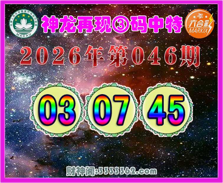 046期:《神龙再现》 🥽③码中特🥽【03.07.45】开:03