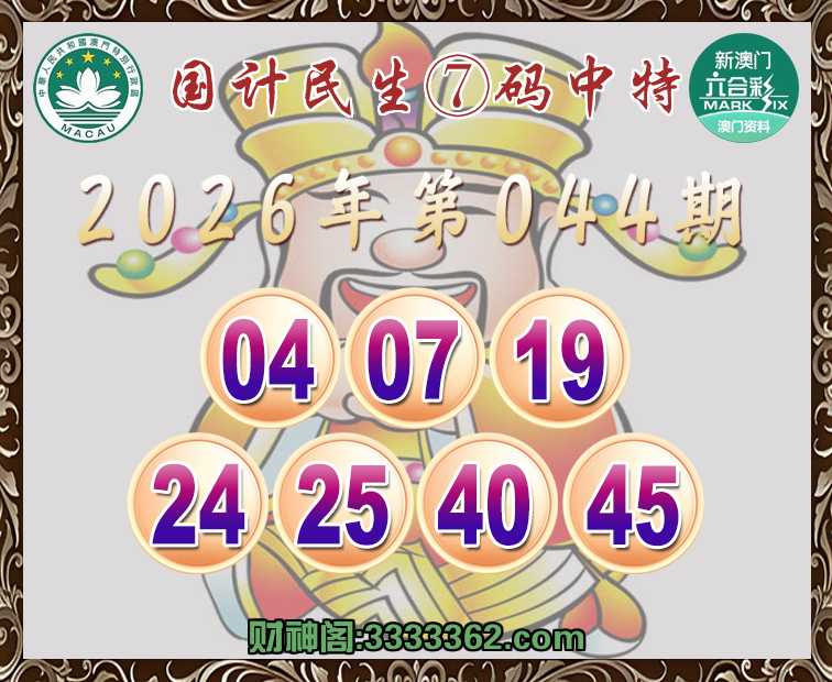 044期:〖国计民生〗 📸⑦码中特📸【04.07.19.24.25.40.45】开:19