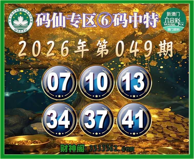 049期:【码仙专区】 ♦️⑥码中特♦️【07.10.13.34.37.41】开:13