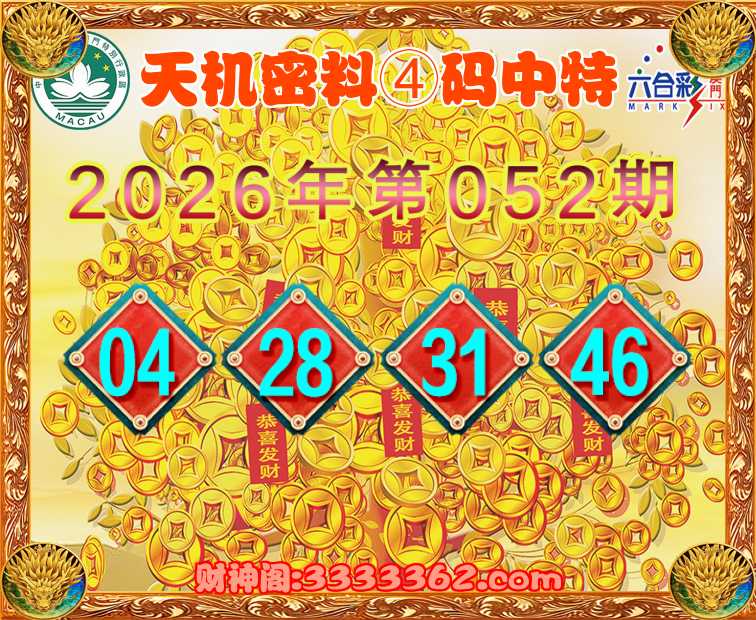 052期: 🥼『天机密料』 🥼④码中特🥼【04.28.31.46】开:00准