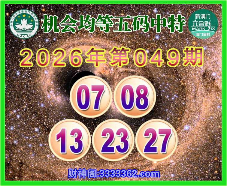 049期:〖机会均等〗 🎀五码中特🎀【07.08.13.23.27】开:13