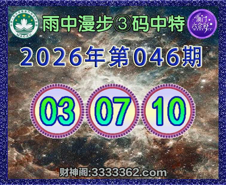 046期:『雨中漫步』 🍙③码中特🍙【03.07.10】开:03