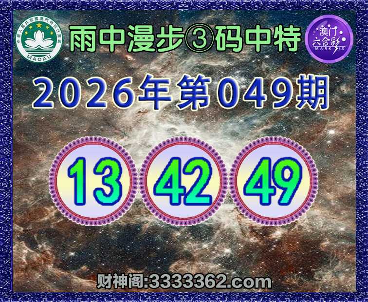 049期:『雨中漫步』 🍙③码中特🍙【13.42.49】开:13