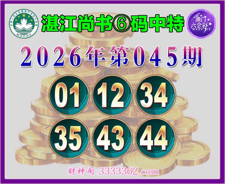 045期:《湛江尚书》 🏃‍♀️⑥码中特🏃‍♀️【01.12.34.35.43.44】开:01
