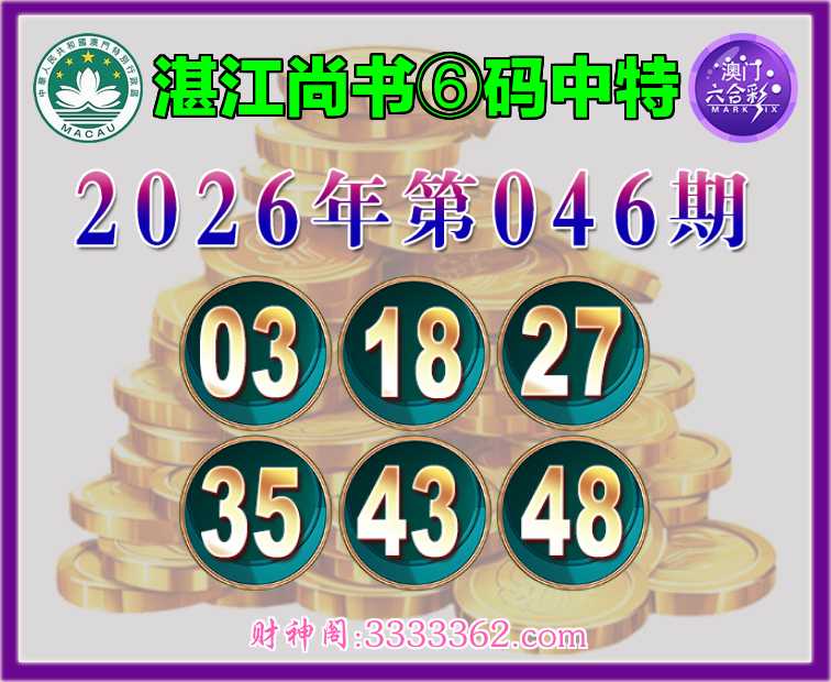 046期:《湛江尚书》 🏃‍♀️⑥码中特🏃‍♀️【03.18.27.35.43.48】开:03