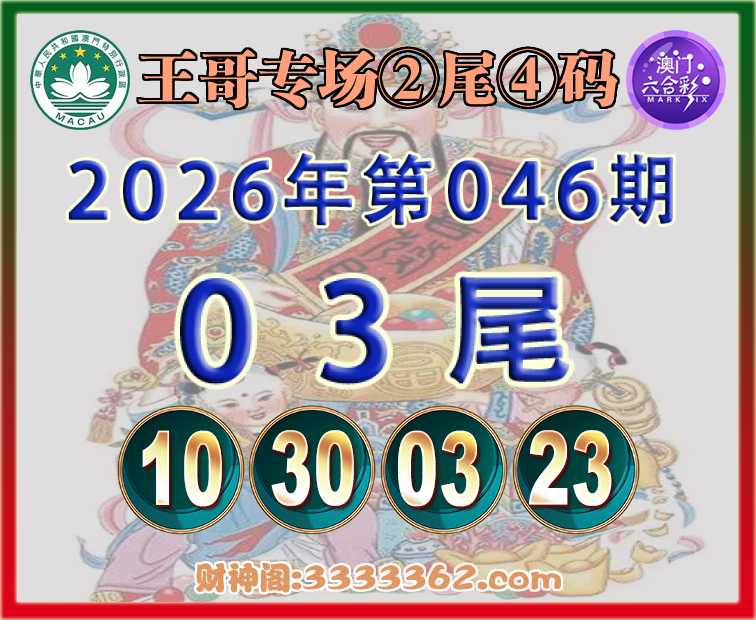 046期:《王哥专场》 ♦️②尾④码♦️【03尾主:10.30.03.23】开:03