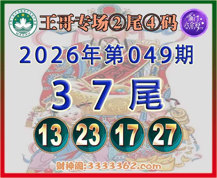 049期:《王哥专场》 ♦️②尾④码♦️【37尾主:13.23.17.27】开:13