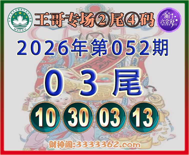 052期:《王哥专场》 ♦️②尾④码♦️【03尾主:10.30.03.13】开:00准