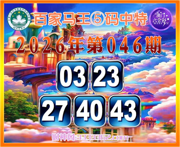 046期:『百家马王』 🎆⑤码中特🎆【03.23.27.40.43】开:03