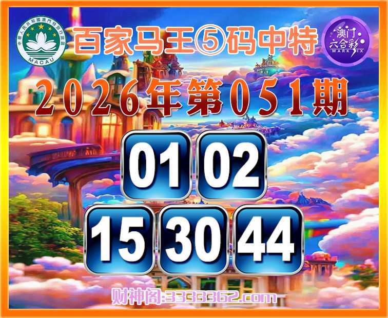 051期:『百家马王』 🎆⑤码中特🎆【01.02.15.30.44】开:01