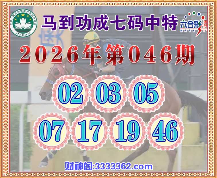 046期:〖马到功成〗 🚡七码中特🚡【02.03.05.07.17.19.46】开:03