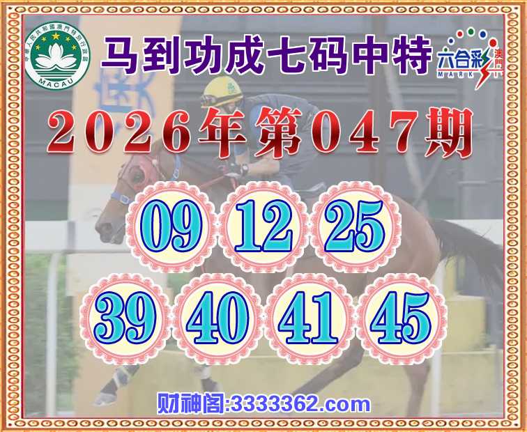 047期:〖马到功成〗 🚡七码中特🚡【09.12.25.39.40.41.45】开:39