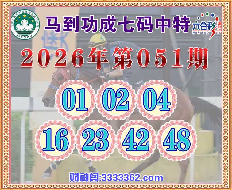 051期:〖马到功成〗 🚡七码中特🚡【01.02.04.16.23.42.48】开:01