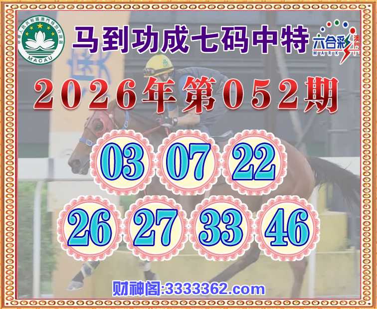 052期:〖马到功成〗 🚡七码中特🚡【03.07.22.26.27.33.46】开:00准
