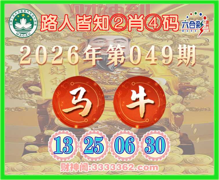 049期: 路人皆知 🥰②肖④码🥰【牛】【13.25.06.30】开:马13