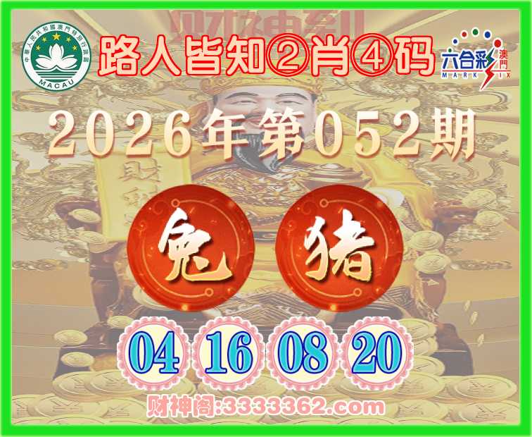 052期: 路人皆知 🥰②肖④码🥰【兔猪】【04.16.08.20】开:00准