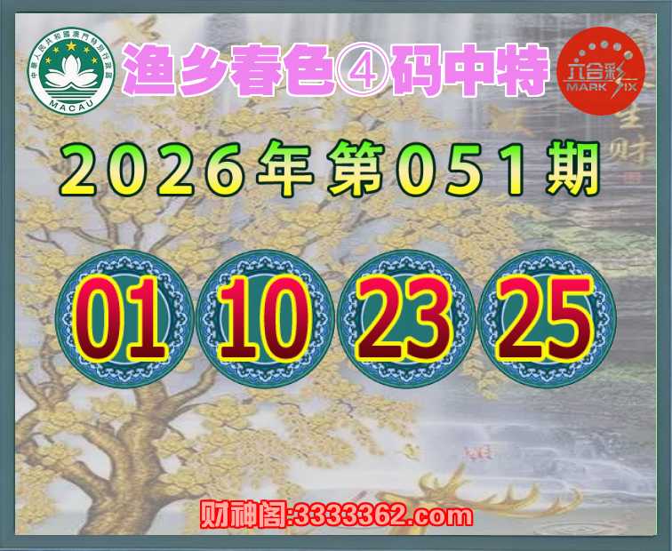 051期:【渔乡春色】 ♠️④码中特♠️【01.10.23.25】开:01