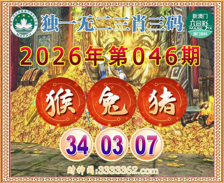 046期:《独一无二》 🥧三肖三码🥧【猴猪】【34.03.07】开:兔03