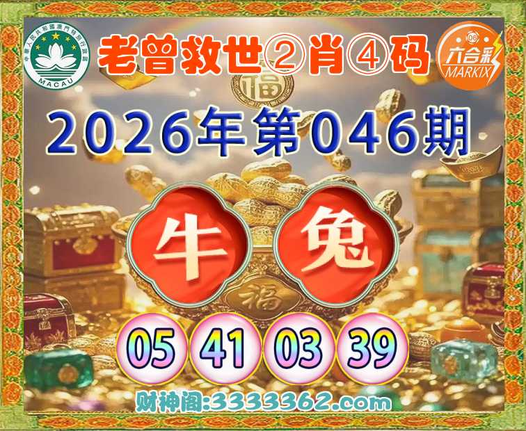 046期:【老曾救世】 🏇②肖④码🏇【牛】【05.41.03.39】开:兔03
