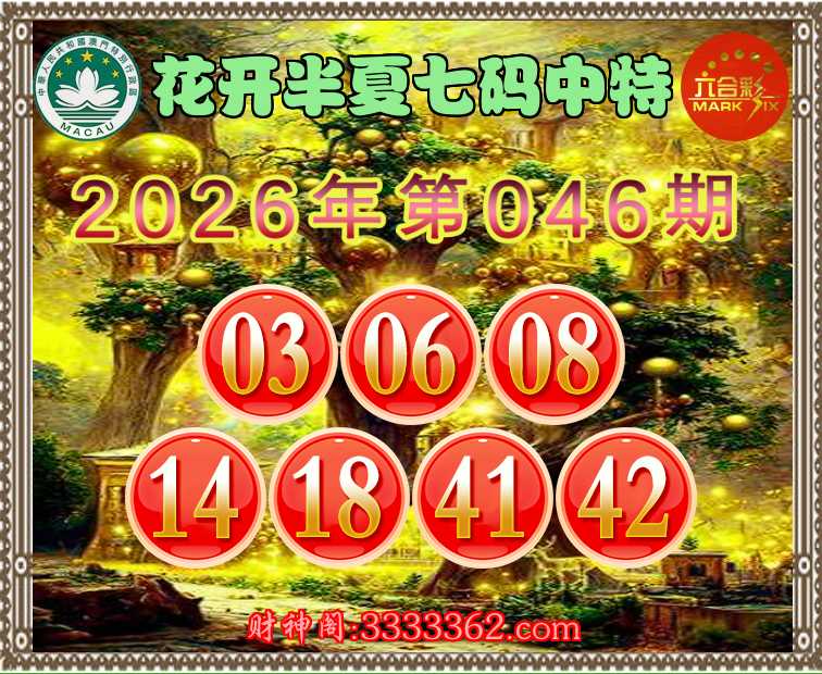 046期:【花开半夏】 💄七码中特💄【03.06.08.14.18.41.42】开:03
