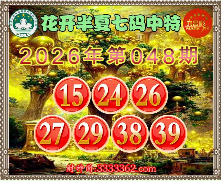 048期:【花开半夏】 💄七码中特💄【15.24.26.27.29.38.39】开:24