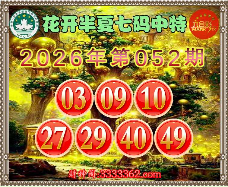 052期:【花开半夏】 💄七码中特💄【03.09.10.27.29.40.49】开:00准