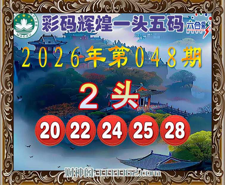 048期:【彩码辉煌】 🌷一头五码🌷【2头主:20.22.24.25.28】开:24