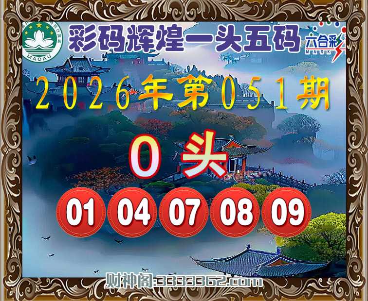 051期:【彩码辉煌】 🌷一头五码🌷【0头主:01.04.07.08.09】开:01