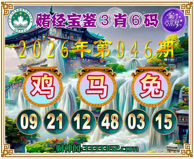 046期:『赌经宝鉴』 🌳③肖⑥码🌳【鸡马】开:兔03