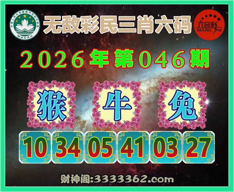 046期:【无敌彩民】 🩴三肖六码🩴【猴牛】开:兔03