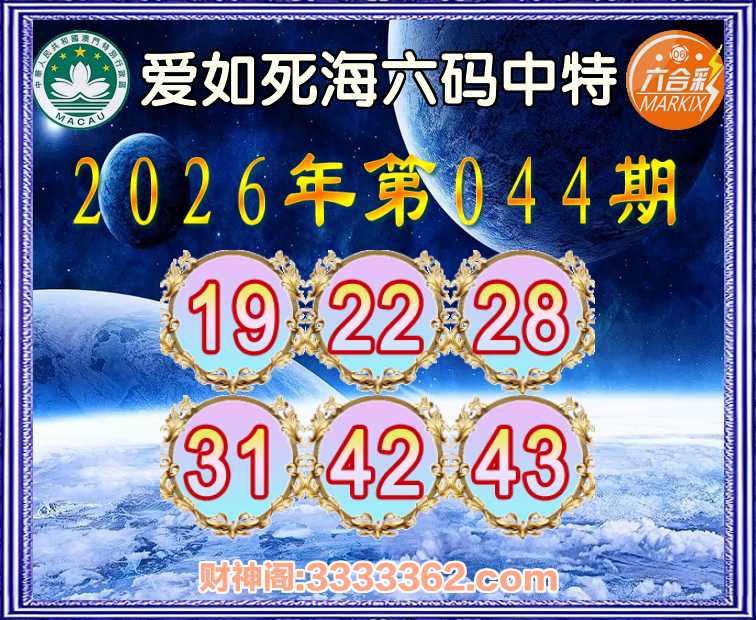 044期:【爱如死海】 🍏六码中特🍏【19.22.28.31.42.43】开:19