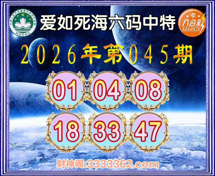 045期:【爱如死海】 🍏六码中特🍏【01.04.08.18.33.47】开:01
